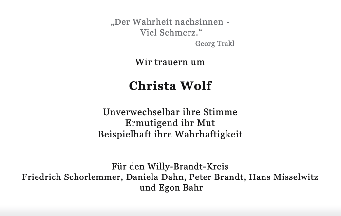 Friedrich Schorlemmer: Für Christa Wolf | II